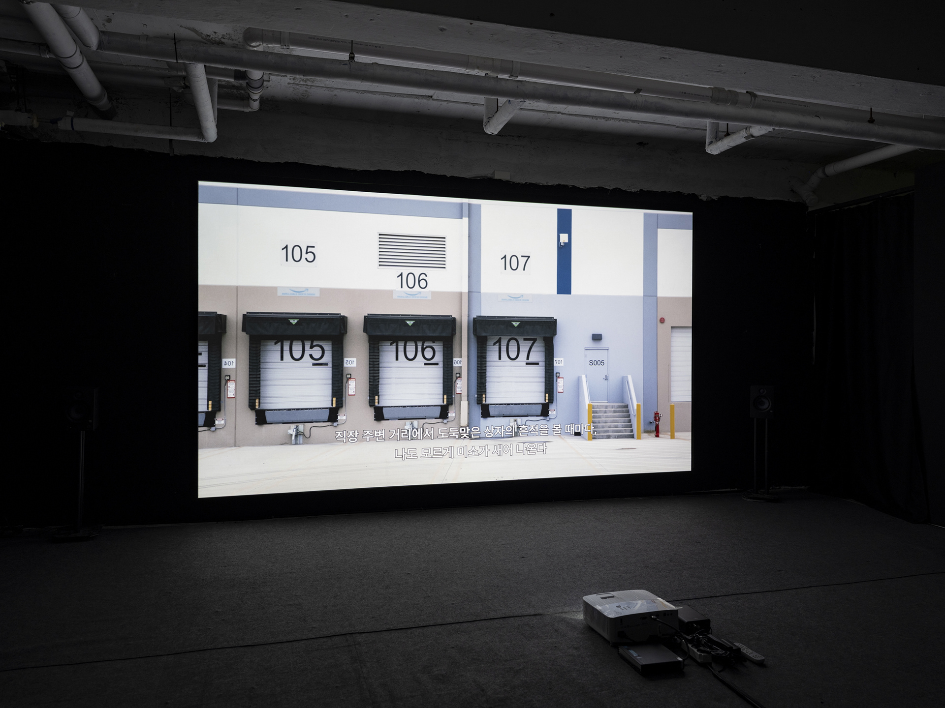 시간은 물류에서 생산량을 측정하는 보편적 기준이다. 물류 노동의 가치는 시간당 생산량(Unit Per Hour, UPH)으로 평가된다. 같은 시간에 더 많은 상품을 운반하기 위해 로지스틱스 시스템은 기계화와 자동화를 통해 끊임없이 효율을 높이고자 한다. 그러나 완벽히 자동화된 시스템 속에서도 인간의 노동은 여전히 필수적이다. 기계의 속도와 알고리즘의 정밀함이 아무리 향상되더라도, 그 속도를 유지하거나 조율하는 것은 언제나 인간의 몸이다. 다시 말해, 인간은 시스템의 필수적인 요소이자 동시에 그 매끄러움을 끊임없이 저지하는 존재다. 반복된 노동으로 축적된 신체적 피로, 집중의 한계와 같은 자연적 변수들은 물류의 효율을 방해하는 요소이며, 시스템은 필연적으로 이 불규칙한 리듬 속에서만 기능한다. 조수민의 수행이 반복되는 실패로 구성되듯, 노동 또한 완전한 동시성과 자동화의 세계 속에서 언제나 어긋나고, 지연되고, 멈춘다.